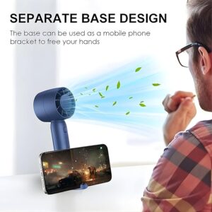 Modern Design: This portable handheld fan features a sophisticated matte navy blue finish and a minimalist, turbine-style head, perfect for high-end tech and lifestyle collections.